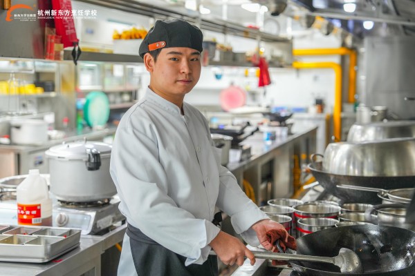 在東大方餐飲后廚,鍋鏟碰撞聲與灶火轟鳴聲中,一個年輕身影格外引人注目。他動作利落,指揮若定,手下三名員工配合默契。他就是邵冬生,今年22歲,杭州新東方烹飪學校行政總廚班周衛(wèi)東老師班級的畢業(yè)生,現(xiàn)任切配主管,正朝著副廚的目標穩(wěn)步前進。