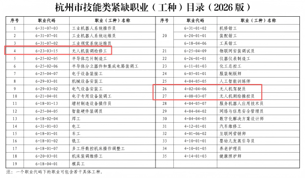 政策官宣!杭州2026年緊缺工種發(fā)布,無(wú)人機(jī)專業(yè)成技能成才黃金賽